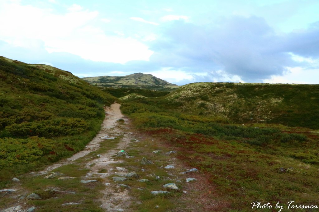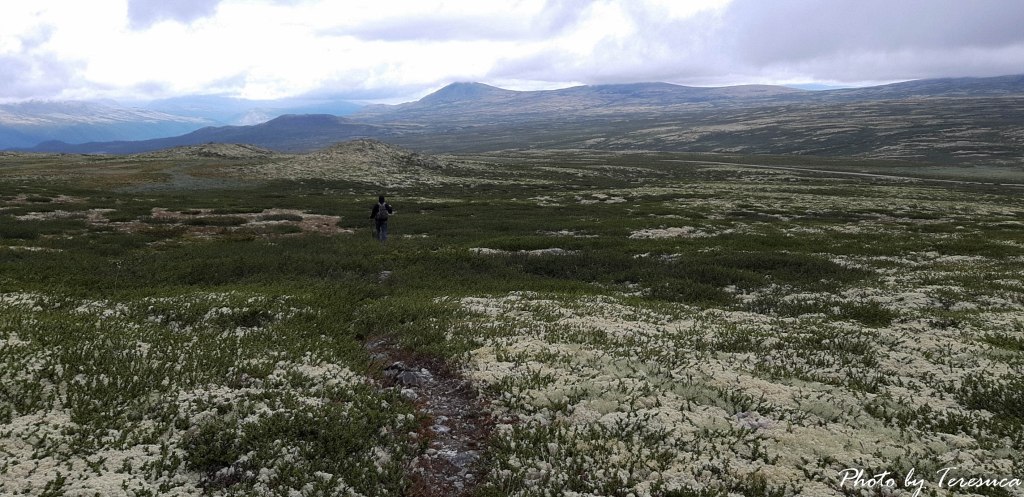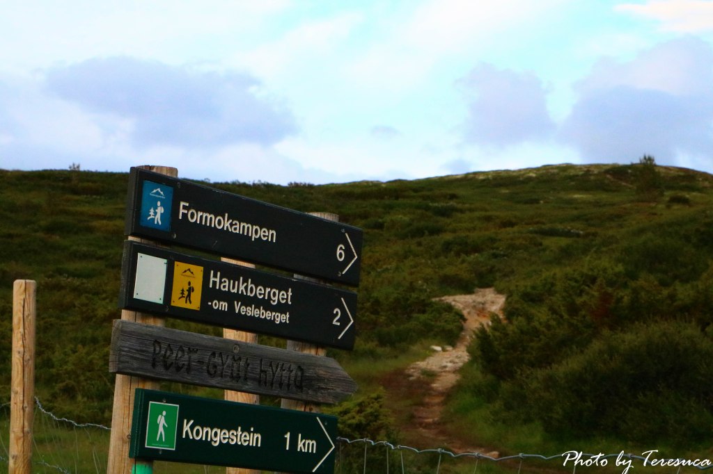 O dia amanheceu cinzento, com nuvens ameaçadoras e frio. Mas nada disto nos fez mudar de ideia de fazermos um treckking naquele planalto maravilhoso. Após o pequeno almoço e com umas sandwiches que preparámos, como já vos falei no post anterior, bem equipados e depois do Tore nos orientar qual o trekking a seguir, lá fomos. Trekking que aqui nestas paragens todos chamam de hiking, eu penso que é por causa das enormes montanhas, lá fomos nós percorrer a trilha haukberget.