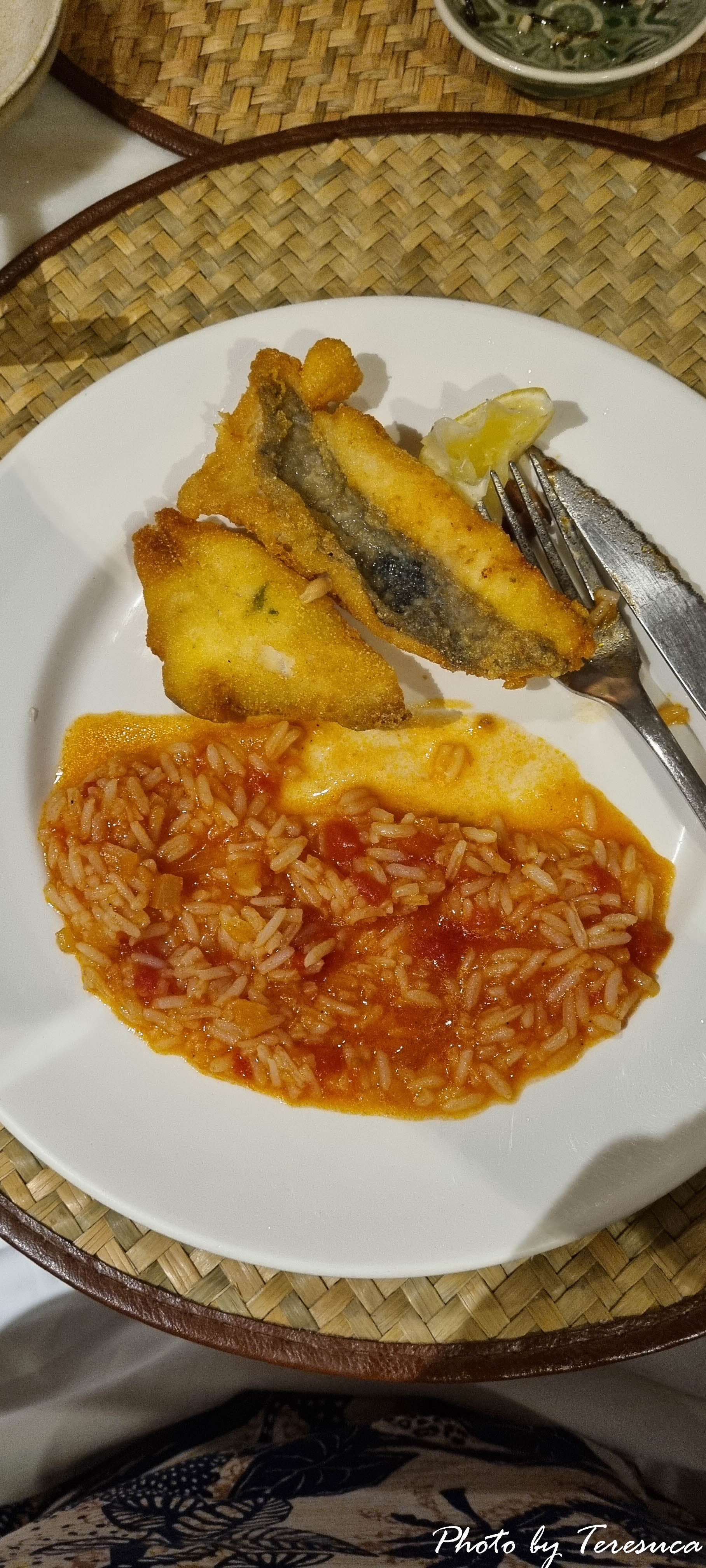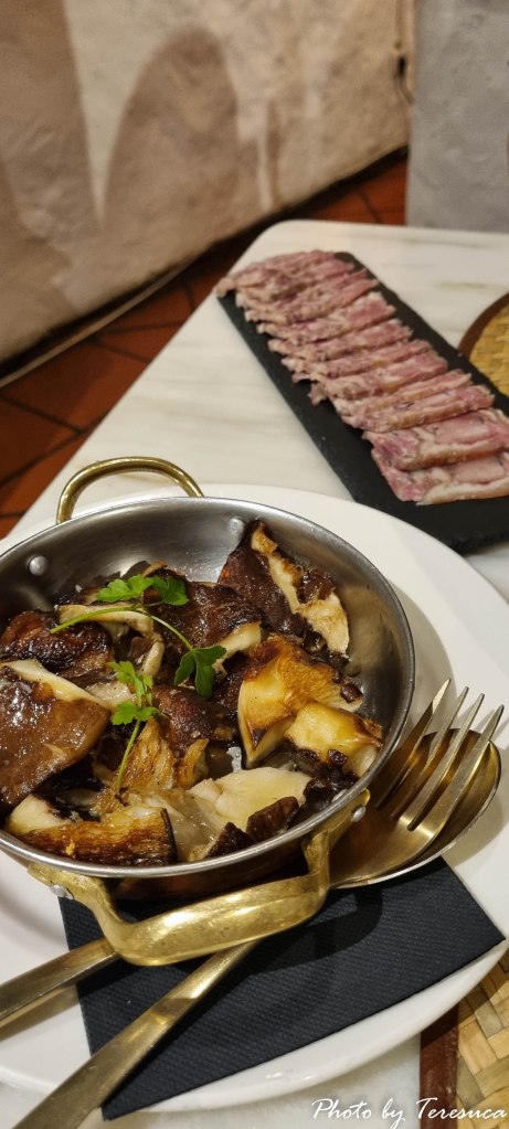 Escolhemos para entrada, cogumelos shiitake salteados em azeite e alho e cabeça de xara. Esta última leva pessoas a fazer trezentos quilómetros só para a degustar e, às vezes, está esgotada. Seguiu-se filetes de peixe galo com arroz de tomate que não podia estar melhor! Bebemos um conventual reserva branco que, para mim, foi uma agradável surpresa. Para sobremesa dividimos uma sericaia. Foi uma excelente escolha este restaurante!